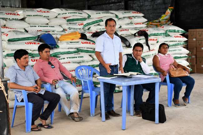 La entrega de insumos agrícolas para el cultivo de maíz a la Asociación Agropecuaria Sumaj Sara (Picota), Asociación de Productores de Maíz Amarillo Duro de la Provincia de Bellavista y la Cooperativa Agropecuario El Dorado, se desarrolló el día miércoles 06 de febrero del año en curso en el local institucional de cada organización mencionada.