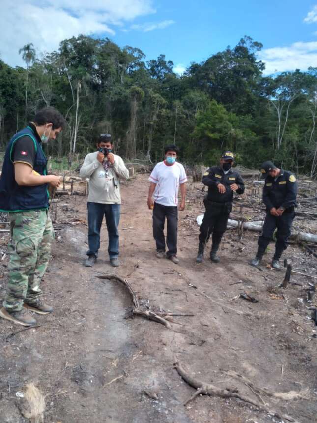 Justamente venimos trabajando con la fiscalía, hacemos operativo por un lado, por otro lado se presenta otro problema, vienen construyendo sus casas, inclusive ayer hemos hecho un operativo inopinado y hemos encontrado casas construidas con la misma madera del bosque que meten motosierra, hemos recogido motosierras a la fiscalía dejado incendiando a un tambo donde se quedaba para traficar maderas, no quedaba otra, la fiscalía está cansada de este tema, ellos realizan un trabajo muy fuerte, la policía también nos ha apoyado y eso no es de ahora, venimos operando hace más de dos años con fuerza, pero aun así no paran.
