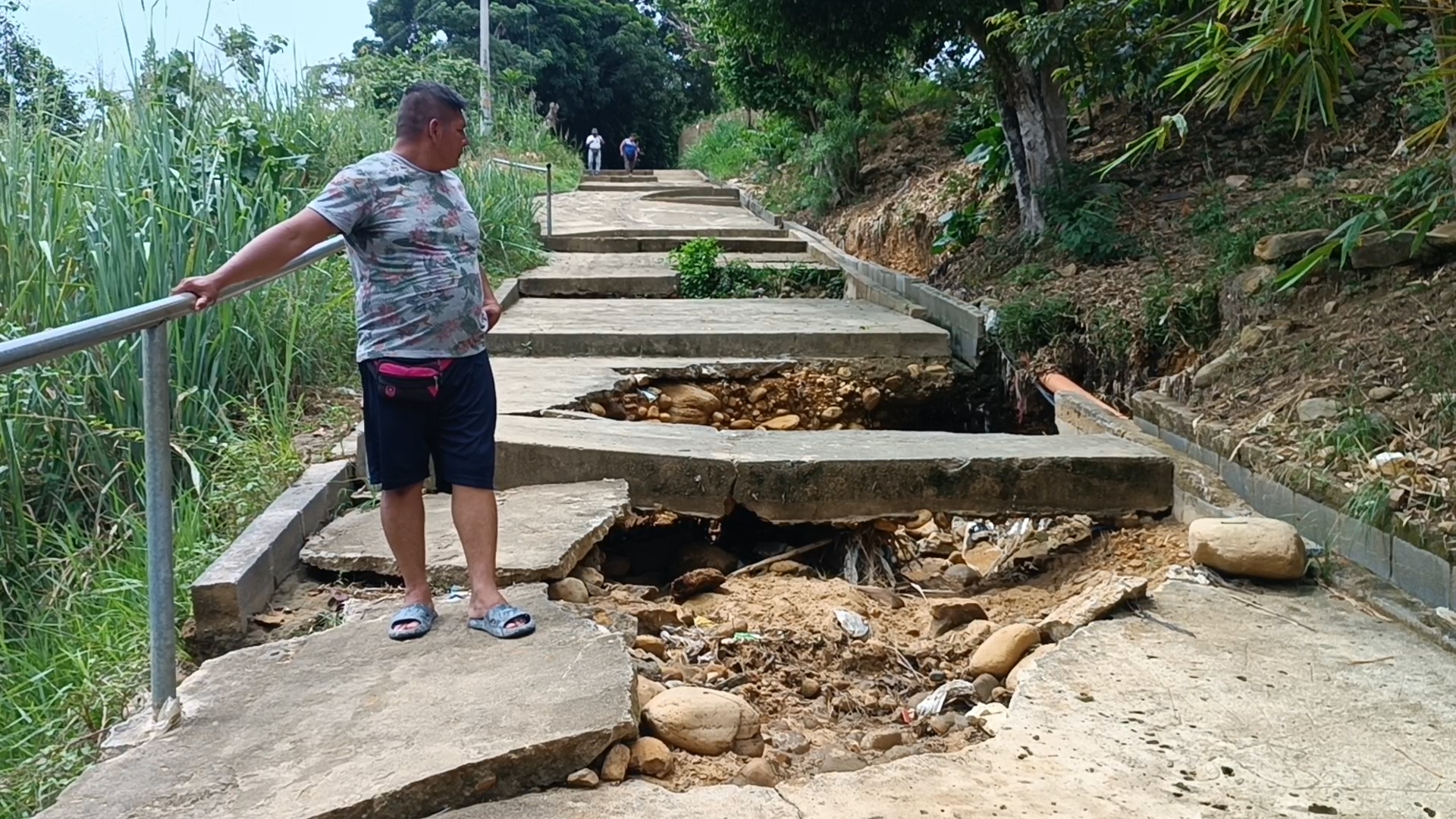 Daniel Espinoza, uno de los moradores afectados, expresó su preocupación ante la falta de acción por parte de las autoridades locales. Según Espinoza, la situación ha causado daños en las tuberías de agua y desagüe, las cuales quedaron expuestas debido al deterioro de la escalinata.