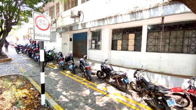 En toda la cuadra dos del jirón Cahuide, personal de la Oficina de Gestión de Servicios de Salud Bajo Mayo, desde las siete de mañana estacionan sus motocicletas en esa calle que está señalizada para que sea respetado para los ciclistas, como parte de sus actividades diarias, sin embargo, eso parece no importarles a los infractores.