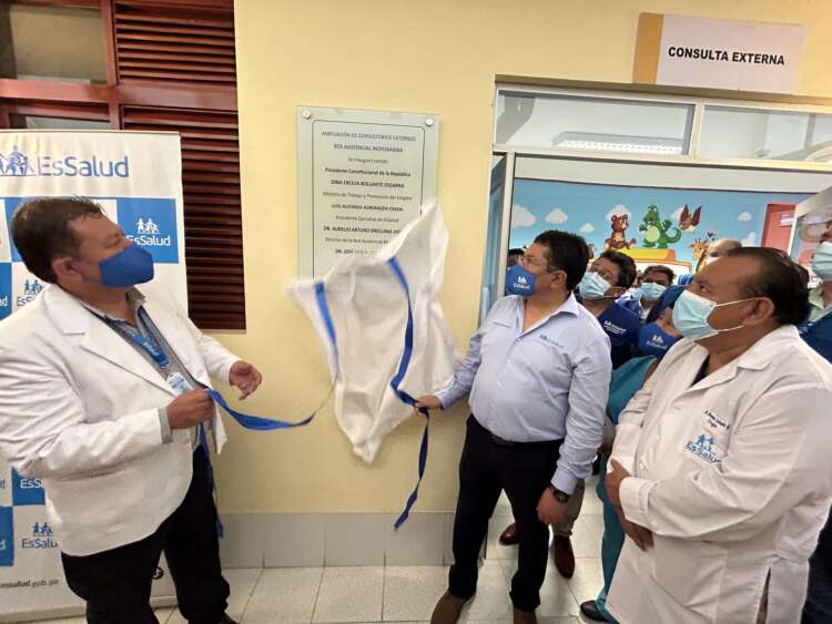 En una importante visita a la región San Martín, el presidente ejecutivo del Seguro Social de Salud (EsSalud), Dr. Arturo Orellana Vicuña, inauguró los modernos consultorios de pediatría y ginecoobstetricia en el Hospital I Alto Mayo de Moyobamba, con lo que se proyecta realizar 1000 atenciones más por mes en ambas especialidades, que tienen alta demanda en la localidad.