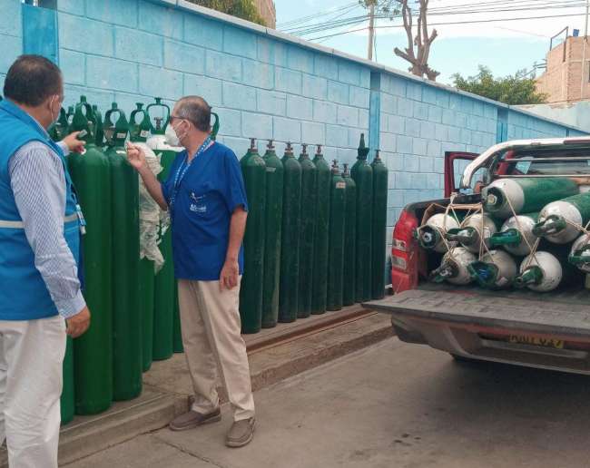 “Este lote de balones llenos permitirá abastecer la necesidad de oxígeno en esta ciudad, donde también hay un significativo número de pacientes. Lo importante es sumar esfuerzos entre toda nuestra institución y, en general, en el sistema de salud a fin de hacerle frente a la pandemia que nos afecta a todos”, explicó el Dr. Gustavo Ganoza.