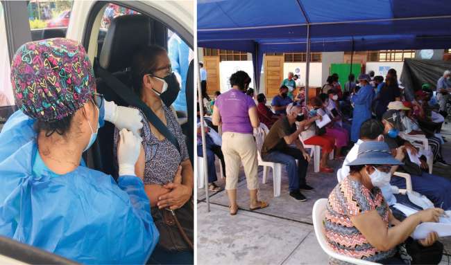 De acuerdo con el director de la Red Asistencial EsSalud Tarapoto, Dr. Beltrán Lozano Gonzáles, en la ciudad universitaria de la Universidad Nacional de San Martín se ha adecuado el vacunamóvil, el cual permite que pacientes con dificultades para movilizarse puedan ser vacunados dentro de su vehículo (auto o motocar).