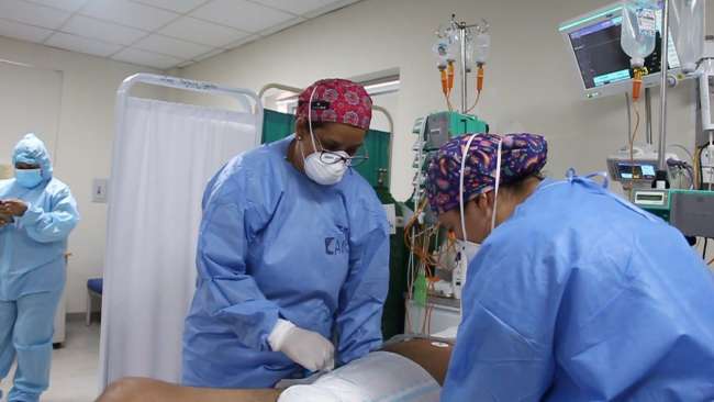 Por su parte, la licenciada en enfermería Ana Villar Morales, jefa del servicio de Enfermería del Hospital II Tarapoto EsSalud, indicó que el trabajo de enfermería es integral al servicio médico. Cabe mencionar que un paciente que ingresa a ventilación mecánica es totalmente dependiente de cuidados y la atención que se le da a cada paciente es en su alimentación, higiene, y funciones básicas, cuidado de la piel, masajes, aspiración de secreciones, humectación; además de la administración de medicamentos, vigilancia de los signos vitales entre otros.