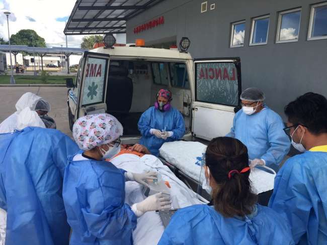 ¡Salvando vidas! EsSalud Tarapoto informó que logró el traslado vía aérea de un médico, que labora en el Hospital II-2 Tarapoto del Minsa, identificado con las iniciales M.R.B. (55) al Hospital Nacional Guillermo Almenara de Lima. El coordinador del área Covid-19 del Hospital II Tarapoto EsSalud, Dr. Meléndez Rigoberto Conislla Huaroto, indicó que el galeno fue diagnosticado con neumonía con compromiso pulmonar por Covid-19. Además, añadió que el galeno afectado también tiene dengue con signos de alarma, por lo que fue necesario su referencia a un hospital de mayor resolución en Lima. Meléndez explicó que todo esto se dio tras recibir una llamada de la gerencia del nosocomio del Minsa indicando la salud complicada del médico. “Nosotros recibimos el llamado del Hospital II Tarapoto del Minsa haciéndonos conocer que había un médico que se encontraba hospitalizado con diagnóstico de dengue y con signo de alarma de infección respiratoria por COVID-19. Tomamos información de eso, la institución hace el recojo del paciente, se hace las coordinaciones y el Hospital Almenara nos acepta la referencia”, explicó. En ese sentido, Conislla Huaroto comentó que para las referencias de pacientes a otro nosocomio, se ejecuta una junta médica, la cual determina si se da o no el traslado. “El trasladado del paciente que tenía seguro de EsSalud, pero trabajaba en el Minsa, fue vía aérea, ambulancia aérea. Nosotros tenemos un flujo establecido en este hospital que cuando tenemos un paciente delicado y necesita ventilador mecánico se hace la interconsulta a la UCI y al no haber disponibilidad de cama; entonces mediante una junta médica se determina el traslado a un hospital”, comentó. El galeno sentenció que el médico M.R.B. está siendo evaluado por el doctor internista Juan Monja Yturregui del Hospital Almenara. Por el momento, el estado del galeno afectado es reservado. Refuerza atención para pacientes COVID-19 Asimismo, el Dr. Meléndez Rigoberto Conislla Huaroto comentó que están desarrollando diversas actividades para abastecer de oxígeno al hospital. Agregó que el nosocomio cuenta con balones recargados para la atención de los asegurados. Finalmente, recordó a la población la importancia de continuar con las medidas de prevención para no seguir contagiándonos, pues en esta ola, se ha podido observar que el virus es más agresivo, pues existen pacientes jóvenes, menores de 30 años que fallecen o en cuidados intensivos. “Por ahora tenemos 66 pacientes hospitalizados con síntomas de moderado a grave y tenemos 6 pacientes en UCI. La población no está tomando consciencia de la situación que vivimos actualmente, pero hay gran cantidad de pacientes, creo que tiene que haber una consciencia de la población y que tomen todas las medidas de prevención para no contagiarnos de este virus ya que se está observando la agresividad en esta ola, se está viendo pacientes jóvenes, menores de 30 años falleciendo y a algunos lo tenemos en UCI. Entonces instamos a que tomen en cuenta las recomendaciones”, puntualizó.