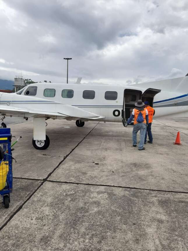 Un bebé de iniciales C.C.J.D nacido el 30 de setiembre del 2021, fue referido hoy de emergencia en vuelo chárter desde el servicio de cirugía del Hospital II Tarapoto al servicio de cirugía del Hospital Víctor Lazarte Echegaray de Trujillo, donde recibirá atención especializada.