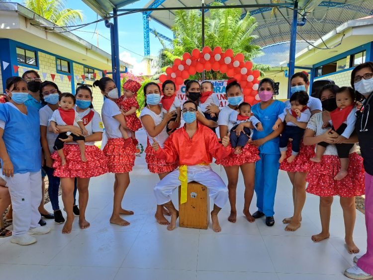 Asimismo, las mamás con sus pequeños presentaron bailes criollos en grupos de los talleres de 0 a 3 meses, de 4 a 6 y de 7 a 12 meses. Estas danzas fueron aprendidas en sus talleres de estimulación los martes y jueves de todas las semanas en el CAP Morales.
