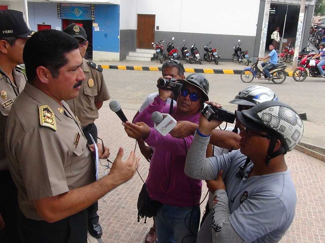 Roger Paredes Jessen, general de la Policía Nacional del Perú, jefe de la Dirección Territorial de San Martín ofreció ayer por la mañana una conferencia de prensa en los exteriores de la Comisaría de Tarapoto, sin embargo cuando los reporteros le indicaron que en sus narices no están respetando la norma de tránsito, porque algunos conductores estacionan sus vehículos en la vereda, de inmediato dispuso a su personal que retiren estas motocicletas de ese lugar.