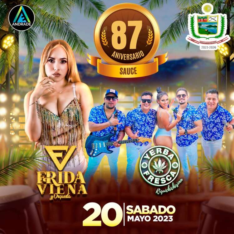 El distrito de Sauce, invita a toda la población a la celebración de sus 87 aniversario, donde gracias a Zumate Perú se presentarán dos agrupaciones de gran prestigio como Yerba Fresca con Percy Abuelo y Frida Viena y Orquesta.