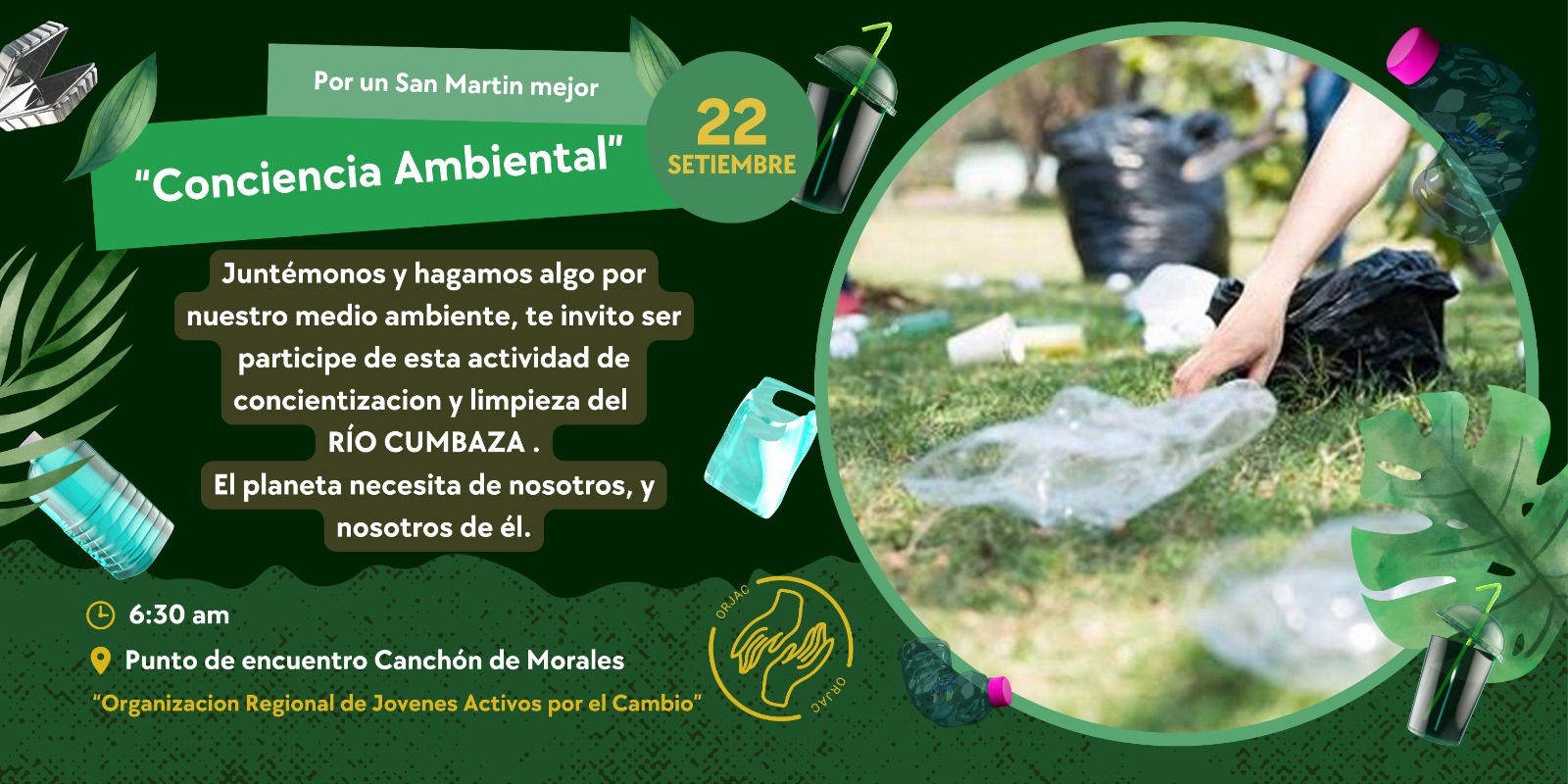 Por eso se invita para este 22 de septiembre a la comunidad sanmartinense, a los jóvenes y personas de las distintas edades a participar, “porque si hablamos de la región de San Martin, no solamente debemos hablar de lo bueno, sino también de lo malo, y lamentablemente lo malo es todo lo que viene sucediendo, por eso debemos generar conciencia y vamos y realizar limpieza del rio Cumbaza, este 22 de setiembre les invitamos a hacer el cambio que nuestra región necesita”.