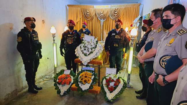El velatorio se realiza en la cuadra nueve del jirón Victoria Vásquez del distrito de Morales y este martes a las 10 de la mañana será sepultado en el cementerio general de esa jurisdicción. Sus familiares exigen justicia para dar con los sujetos que acabaron con la vida del suboficial, quien supuestamente fue victimado al resistirse un atraco.