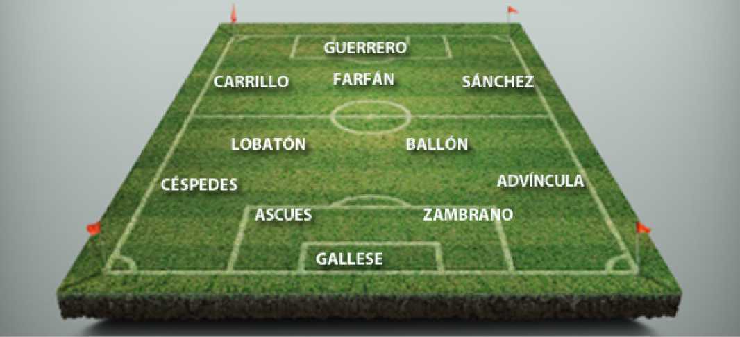 Para el debut copero de la Selección Peruana ante Brasil, la base será prácticamente la misma. Yoshimar Yotun, por lesión, llegaría para el segundo partido ante Colombia. Por eso Jair Céspedes seguiría de titular por la banda izquierda.