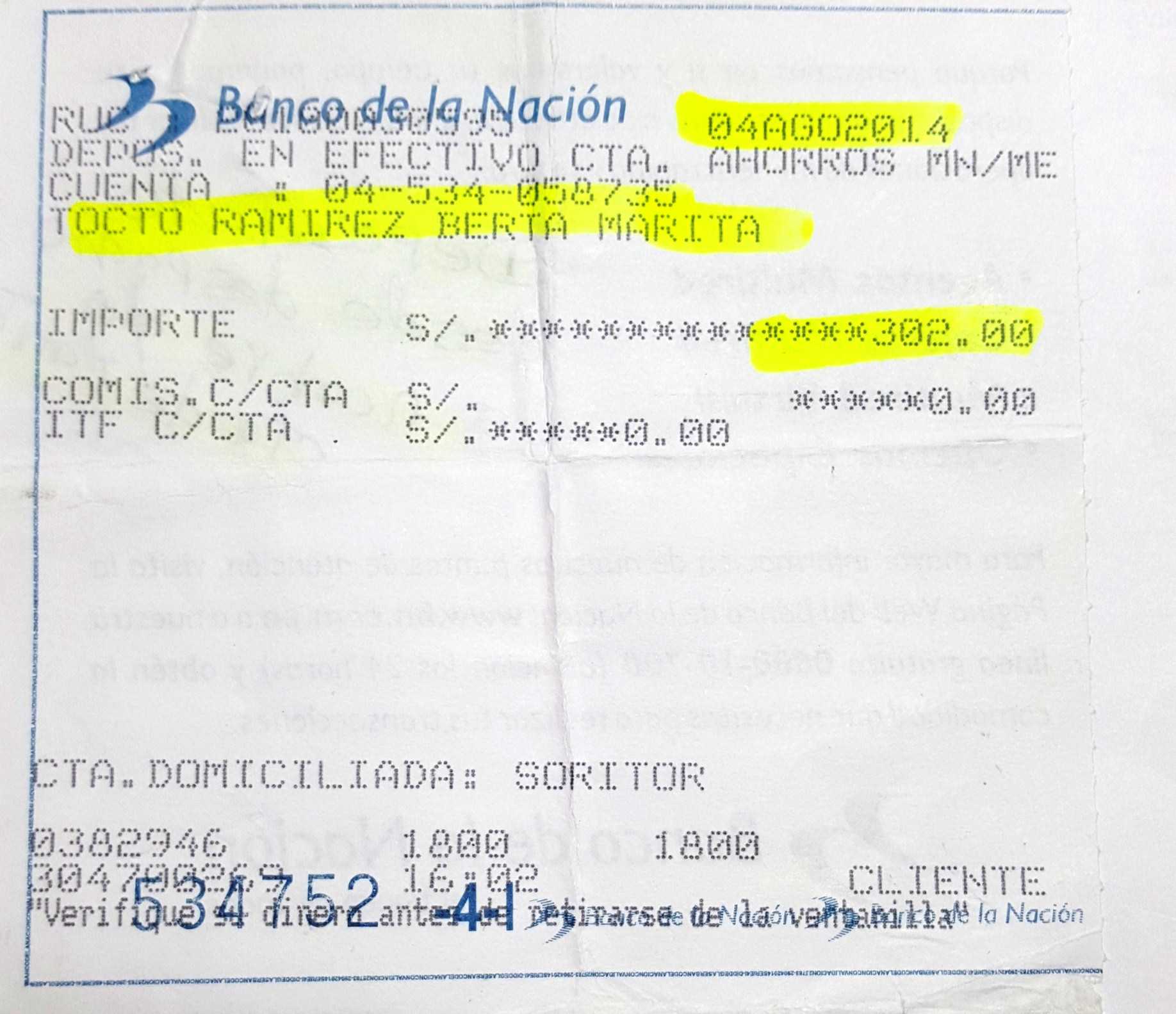 “Sabemos de dónde viene la contra campaña que cada día preparan en mi contra. La señora Tocto señala que ella realizaba los pagos por el local que alquilaba en Moyobamba. Además, que obligaba a adulterar montos en recibos que emitía un reportero por difusión. Estas afirmaciones son falsas y sus declaraciones son calumniosas y difamatorias en contra de mi persona, pues dañan mi honorabilidad e imagen. Aquí les muestro copia de recibos que yo depositaba a su nombre para el pago de alquiler de local en el Banco de la Nación. Cualquier persona con valores y principios hubiera denunciado el hecho inmediatamente, no esperar que estemos en un proceso electoral para hacerlo”, indicó Saavedra.
