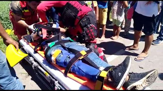 Bomberos y policías auxiliaron a un joven estudiante del Instituto Superior Tecnológico Nor Oriental de la Selva, luego de un violento accidente de tránsito en la Vía de Evitamiento Dos de Tarapoto, la víctima resultó con fractura en el fémur derecho, muy cerca de la cadera.