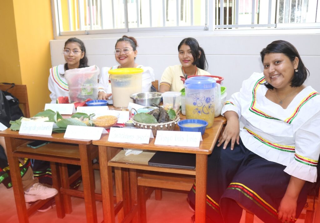 Estudiantes de EIN de escuela pedagógica expone alimentos tradicionales de las etnias Shawi y Kukama