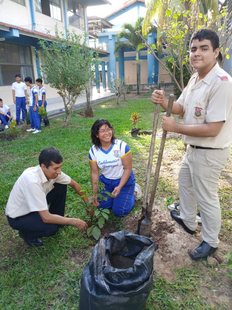 En una jornada programada por el Municipio Escolar y Dirección del colegio Emblemático Monseñor Atanasio Jáuregui, estudiantes de esta prestigiosa institución educativa realizaron ayer jueves, el sembrado de plantas ornamentales en los predios de la institución, con el objetivo de fomentar la conciencia ambiental y embellecer el entorno escolar.»