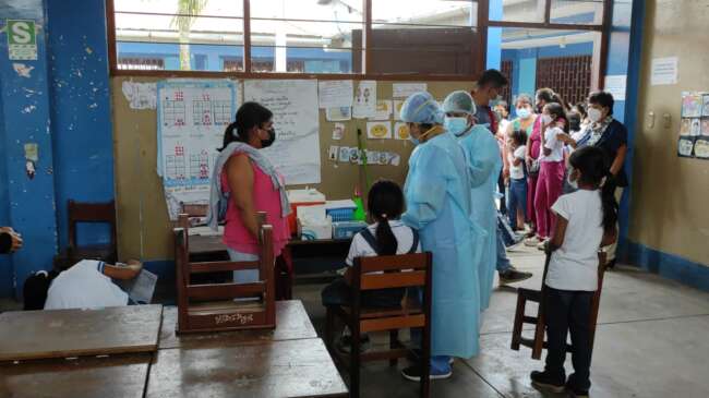Luego que dos docentes de la Institución Educativa 0096 del centro poblado Las Palmas dieron positivos al Covid – 19, el director del plantel solicitó la intervención de personal del sector Salud, con la finalidad de realizarles pruebas a varios alumnos que señalaban tener los síntomas de la pandemia. Ayer por la mañana las clases escolares fueron suspendidas.