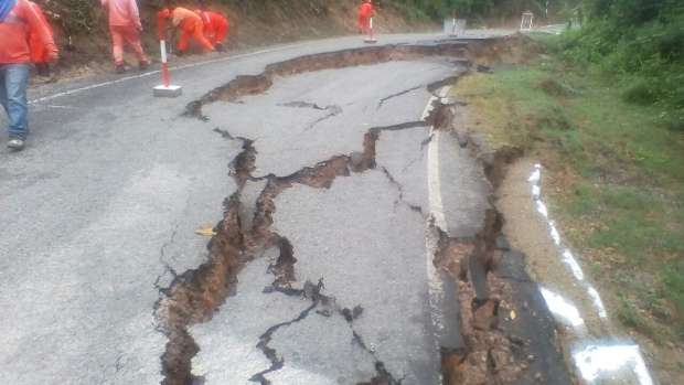 Este tramo de carretera forma parte de la Red Vial que ejecutó el Gobierno Regional de San Martín el año pasado, el cual muestra nuevamente desplome de su plataforma, desprendimiento en algunos tramos y rajaduras. La empresa constructora que la ejecutó, HeH S,A, es la encargada de su mantenimiento hasta el mes de junio del próximo años 2019.