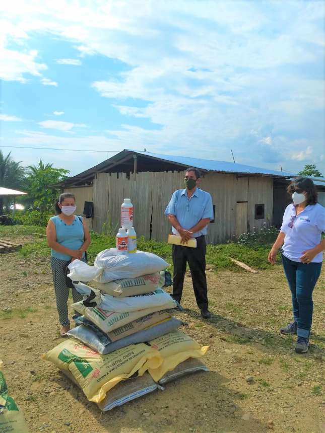 Rafael Baylón, alcalde del Centro Poblado de Nuevo Horizonte, y Antonio Ruíz Hernando, en representación de los agricultores beneficiarios agradecieron al gobierno regional de San Martín y a Devida por el apoyo que vienen brindando a los productores cacaoteros a través de la asistencia técnica en el manejo de sus cultivos, complementando con un kit de fertilizantes que les permitirá mejorar su producción y mitigar la asimilación del cadmio en las fincas del cacao.