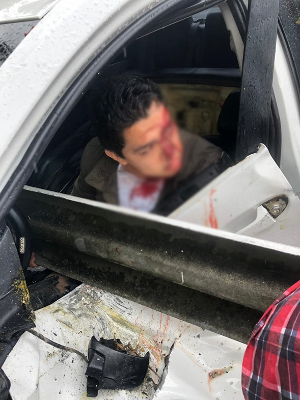 Moyobamba. Producto de la excesiva velocidad y la pista mojada a causa de la lluvia, el conductor de un automóvil particular y el copiloto se salvaron milagrosamente de morir, luego que el vehículo en la que viajaban terminó por despistarse en la carretera Fernando Belaunde Terry, cerca al centro poblado de Lahuarpía, ayer en horas de la mañana. El automóvil particular de color blanco conducido por Telésforo Reátegui Flores (35) y su acompañante de nombre Juan Díaz Alva (28), se dirigía desde Tarapoto con destino a Moyobamba, al parecer la excesiva velocidad originó que terminará despistándose y choque contra las barandas de seguridad de la carretera. Producto del accidente, el carro quedó serios daños y el chofer atrapado entre los fierros retorcidos. Fueron los moradores del lugar qué con la ayuda de la Policía de Carreteras, rescataron al conductor haciendo uso de una sierra para cortar la puerta y de esta manera se pueda liberar. Luego de varios minutos de trabajo, lograron retirar al herido quien presentaba corte profundo en la cabeza y la parte del tabique, mientras que el copiloto solo sufrió golpes a la altura de la rodilla izquierda; ambas personas fueron trasladados al hospital Minsa de la ciudad de Moyobamba, donde tras suturar las heridas fueron dados de alta para continuar su recuperación en casa. (Franclin Laván)
