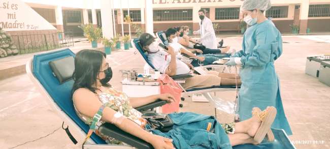 Con 65 unidades recolectadas resultó todo un éxito la gran campaña de donación voluntaria de sangre realizada en la I.E. Abilia Ocampo, en la provincia de Rioja. Este logro se produjo gracias al arduo trabajo de sensibilización y orientación a la comunidad por parte del personal de salud del hospital riojano, en coordinación con la Estrategia sanitaria Pronahebas de la Red de Salud y el Banco de Sangre Regional.