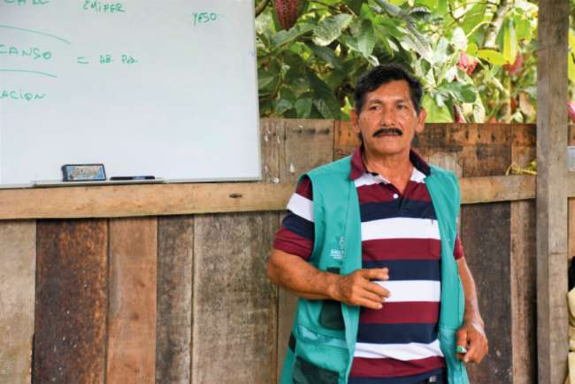San Martín, 07 de julio de 2019.- Edil Sandoval Arévalo, el productor cacaotero más competitivo del Perú, viene desarrollando jornadas de capacitación a cacaoteros de la región San Martín con la finalidad de fortalecer los conocimientos de los productores líderes, en cuanto al manejo integrado del cultivo, desde la preparación del terreno, siembra, manejo, cosecha y post cosecha y comercialización del producto de buena calidad.