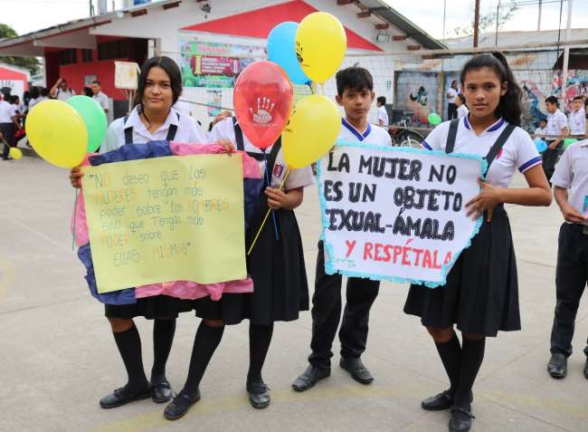 Se trata de adolescentes que cursan el segundo, tercer y cuarto grado de secundaria pertenecientes a las instituciones educativas “San Juan de Maynas” y “Serafín Filomeno”, quienes participaron de actividades formativas – preventivas para la prevención de toda forma de violencia de género y de los integrantes del grupo familiar, acoso escolar (bullying), consumo y micro comercialización de drogas, trata de personas, hurto y robo agravado; entre otros temás de interés social.