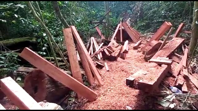 El coordinador de los Ecooguerreros, Iván Rojas García, mediante el aplicativo Geobosque del Ministerio del Ambiente, encontró una zona que viene siendo deforestada de manera indiscriminada en plena Área de Conservación Cordillera Escalera, sin que las autoridades locales y regional tomen acciones hasta el momento. Indicó que la situación es preocupante ya que están extrayendo árboles antiguos y en especies en extinción. Rojas García manifestó que las especies forestales que están talando son árboles madre, que debería ser considerado como semilleros y son difíciles de encontrar y, lo que le sorprende es que esto se viene dando en plena zona intangible, donde nadie tiene autorización de sacar madera. «Esta situación es grave y se viene dando cerca de la naciente de la quebrada Cachiyacu, que abastece de agua a Tarapoto. No entiendo como nadie se dió cuenta de esto. Espero que los responsables de las entidades competentes tomen acciones y sentar un precedente. Si dejamos pasar esto, podría hacerse incontrolable» indicó Rojas García. La madera que se encuentra en el mismo lugar de extracción está aserrada y hasta el momento nadie sabe quien es la persona que está talando bosque, y en opinión de Iván Rojas no existiría decisión política de hacer algo al respecto. La zona donde están deforestando está ubicada en la jurisdicción del distrito de San Antonio de Cumbaza, a unas tres horas de camino, por ahora se desconoce si las autoridades tomaron acciones ante esta grave situación ambiental.(Hugo Anteparra)