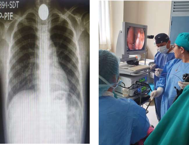 Sin embargo, la rápida intervención de los profesionales de la salud del Hospital Tarapoto, conformado por la Gastroenteróloga, Karol Valdivia López, el Médico anestesiólogo Jorge Ríos Barrera, Licenciados en enfermería y técnicos en enfermería, ayudados por equipos modernos (Fujinon 4450/ endoscopio EG 530WR) y pinza en diente de ratón, pudieron realizar con éxito el procedimiento: endoscopia alta con extracción de cuerpo extraño y así establecer la salud de la infante.
