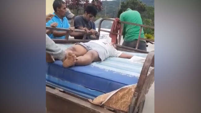 Juanita Satalaya fue auxiliada por sus vecinos y familiares quienes en una furgoneta la trasladaron al Hospital II – 2 de Tarapoto, y tras recibir los primeros auxilios fue deriva al Área de Observaciones y su estado de salud es delicado. Según su diagnostico médico, presente traumatismo encéfalo craneano moderado, fractura de pierna y una costilla.