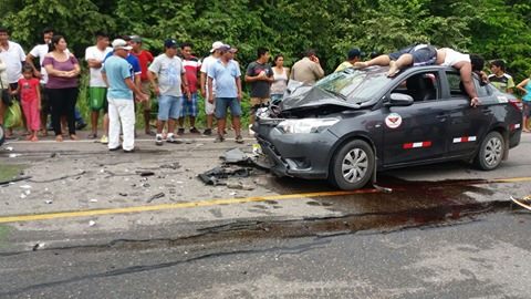 Un testigo que se encontraba en el auto informó a la policía que la moto lineal invadió el carril contrario, el auto negro de placa de rodaje S1k-617 Toyota, circulaba de Bellavista a Juanjui y al percatarse de la motociclista, el chofer Miguel Vásquez Vela de 54 años de edad, detuvo el auto y la motocicleta impactó en la parte derecha del automóvil y el chofer que manejaba la motocicleta, con el impacto, quedó en la capota de auto donde falleció instantáneamente y el copiloto salió volando a uno 3 metros aproximadamente del choque, quedando a un costado de la pista.