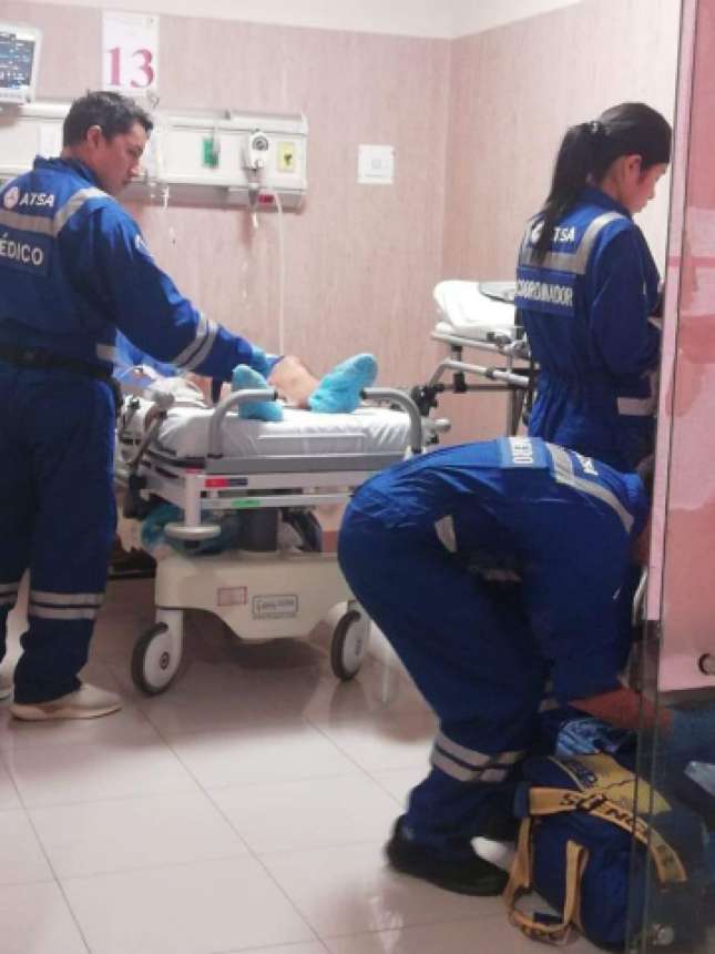 El paciente fue trasladado al Hospital de la Policía Nacional de Lima, con diagnostico traumatismo cervical, trauma vertebro medular, traumatismo torácico por perforación por arma de fuego, además presenta dos orificios de 0,5 centímetros de diámetros en la zona media del cuello y en el homóplato derecho.