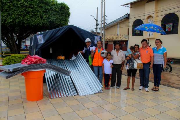 El alcalde de Lamas Ing. Fernando del Castillo Tang, en su calidad de presidente del Comité Provincial de Defensa Civil, junto al subgerente Jaime Soria Panduro entregaron ayuda a familia que perdió todos sus bienes a consecuencia del incendio de su vivienda ocurrido el sábado 4 de febrero, en la ciudad de Lamas.