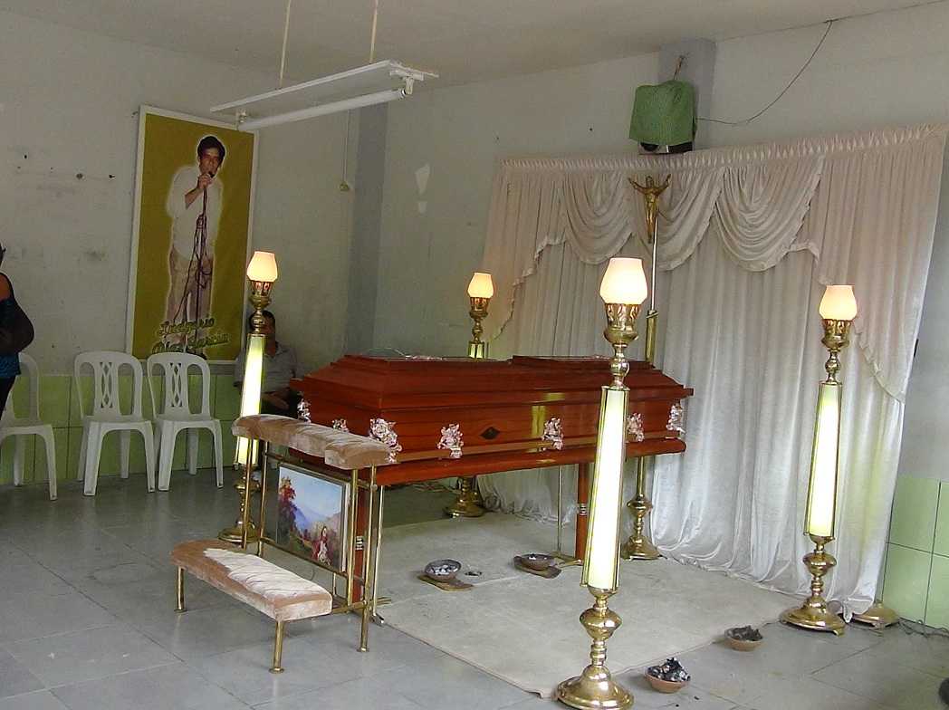 El velatorio se realiza en la intersección de los jirones Chiclayo y Lima, ubicado a dos cuadras de la plaza de Armas de Lamas. Hoy miércoles el cuerpo de Ludgerio Díaz, será sepultado en el cementerio general de Lamas, luego que sus once hijos lleguen de distintos lugares para estar presentes en el funeral. (Hugo Anteparra)
