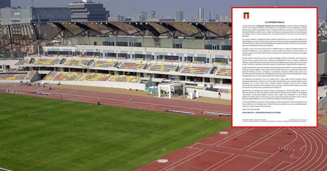 La Junta Directiva de la Federación Deportiva Peruana de Atletismo, en forma unánime y recogiendo el sentir de las Ligas de Atletismo, entrenadores y, principalmente, el de los deportistas, rechaza tajantemente cualquier posibilidad de que el Estadio de Atletismo, construido en la Villa Deportiva Nacional (Videna) con motivo de los Juegos Panamericanos y Parapanamericanos Lima 2019 pueda ser utilizado, aún en forma temporal, para una práctica distinta al fin para el que fue creado y destinado.