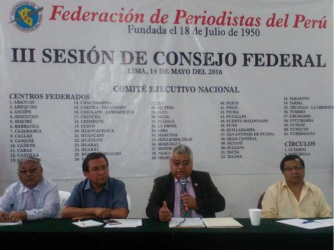 La Federación de Periodistas del Perú realizó el sábado 14 de mayo la III Sesión de Consejo Federal el cual contó con la abrumadora asistencia de los máximos representantes de los Centros Federados de Periodistas del país. Este órgano analizó y debatió los avances de las diversas acciones que su Comité Ejecutivo Nacional realizan hasta el momento.