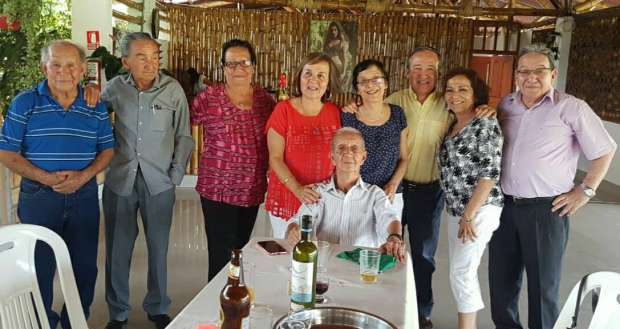 En la foto Miguel, Abel, Petty, Carmela, Elsa, Esteban, Alicia, Javier y sentado el cumpleañero don Cèsar, a quien deseamos muchos años màs de vida.