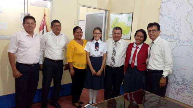 Yurimaguas. El director de la Unidad de Gestión Educativa Local de Alto Amazonas (UGELAA), Lic. Julio Meléndez Padilla, recibió ayer en su despacho a las alumnas ganadoras en la etapa regional del concurso de Argumentación y Debate, sobre la corrupción, Sharon Masiel Paima Rodriguez (15), del 4to grado de Secundaria del Colegio Industrial, y Mallely Julisa Tello Campos (17), del 5to de secundaria del Colegio José María Arguedas.