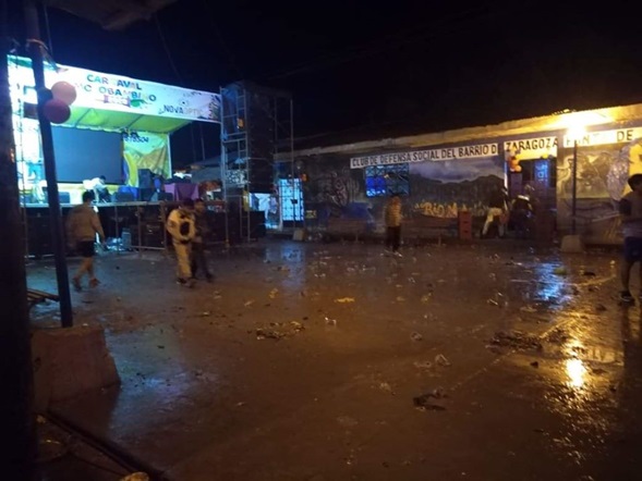 El incidente ocurrió aproximadamente a las 10:00 de la noche, hecho que ha generado el pánico entre los asistentes que corrían despavoridos en busca de refugio en las viviendas cercanas, incluso varios de los inmuebles resultaron afectados con las lunas de las puertas y ventanas destrozadas.