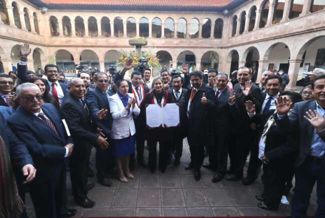 La ceremonia se realizó en el patio de Honor del Centro de Convenciones de la Municipalidad Provincial del Cusco, que congregó a los congresistas Alejandro Soto (APP), presidente de la Comisión de Transportes y Comunicaciones, y Luis Aragón (AP), a autoridades provinciales y locales, y a 14 directivos de medios de comunicación de regiones del país.