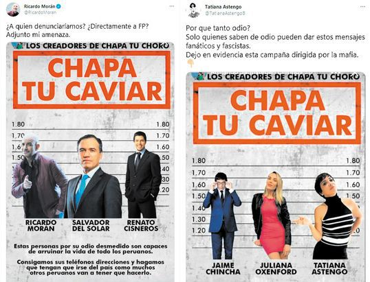 La actriz Tatiana Astengo, expresó su malestar. “¿Por qué tanto odio? Solo quienes del odio viven pueden dar estos mensajes fanáticos y fascistas. Dejo en evidencia esta campaña dirigida por la mafia”, denunció en Twitter.
