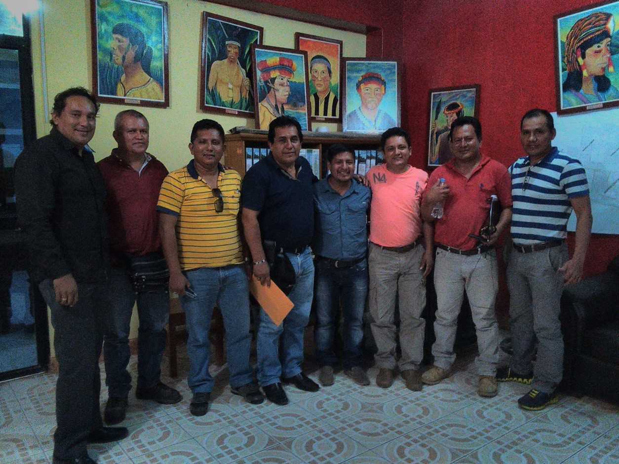 Funcionarios de la oficina zonal, autoridades del Datem del Marañón y dirigentes del Frente de Defensa, expresaron su optimismo por la visita del Director Ejecutivo del PEDAMAALC. (Roger Torres)