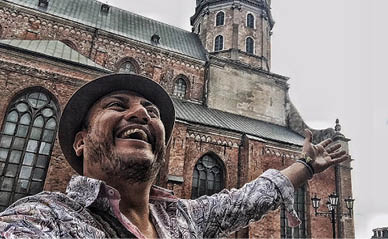Herbert Quinteros es otro orgullo de San Martín, pues con su música  viaja por todo el mundo, haciendo conocer los instrumentos amazónicos y nuestros idiomas. Admirable personaje, admirable trabajo… (Foto en Letonia)