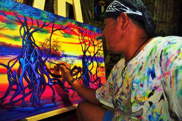 INSPIRACIÓN DE LA PLANTA. ROBERT SIXTO SAURÍN ARTISTA PLÁSTICO DE LA AMAZONÍA INSPIRÁNDOSE SIEMPRE EN LA PLANTA DE LA ZONA