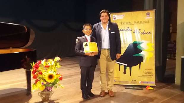 ORGULLO TARAPOTINO. Alejandro delgado quedó en tercer lugar en la categoría b en el festival nacional pianistas del futuro. Felicitaciones. En la foto con el profesor Christian Marquina de la casa de la Cultura de Tarapoto