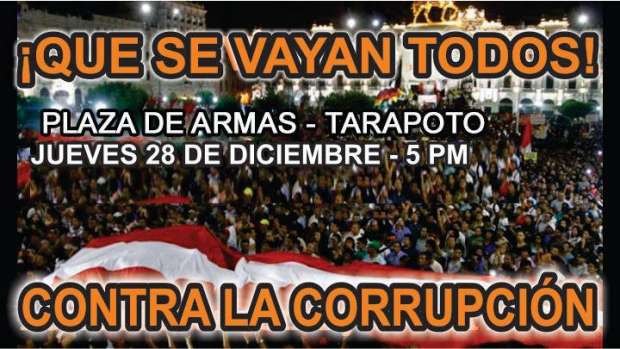 TARAPOTO PROTESTA, Hoy se realizará la marcha contra la corrupción en Tarapoto la concentración es en la plaza Mayor desde las 5:00 pm