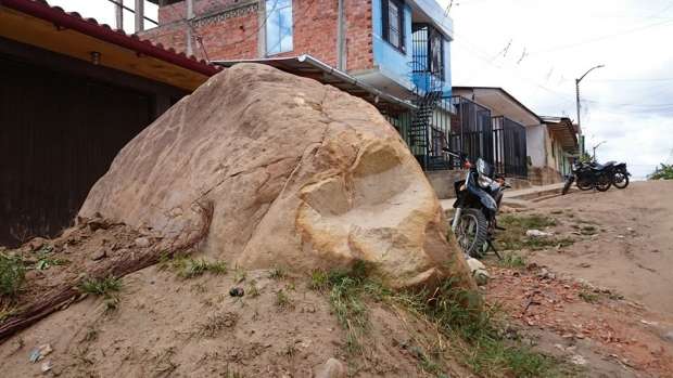 ROCA GIGANTE. Cuarta cuadra del Jirón San Martín distrito de la Banda de Shilcayo, ayer se cumple el plazo fijado por la municipalidad del distrito para retirarla. Gerente municipal pidió dos días más.