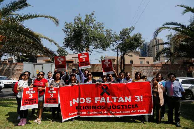 FALTAN 3. La Asociación Nacional de Periodistas (ANP) realizó plantón ante la Embajada de Ecuador en Lima demandando que el secuestro y crimen de los tres colegas del diario @elcomerciocom no quede impune.