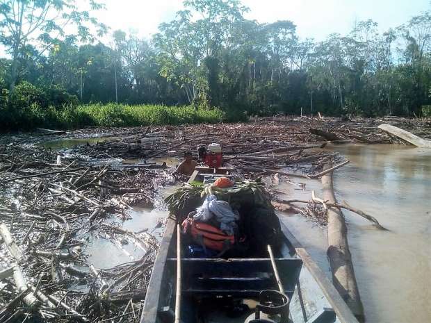 DENUNCIA. Desde el año pasado 60 comunidades indígenas Shawis del distrito Cahuapanas, provincia Datem del Marañón, región Loreto, se encuentran incomunicados por el cierre de su única vía de comunicación que es este río denominado Sillay. (facebook Teobaldo Meléndez)