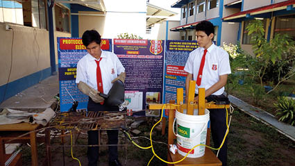 Tecno.Ing. Máquina de soldar casera con agua y sal. En Tecnología e Ingeniería de la feria escolar de Ciencia y Tecnología, ocupó el primer lugar el proyecto, “Máquina de soldar casera con agua y sal”, de la I.E.P. Industrial 029.